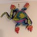 This colorful hand carved iguana is approx. 7.5” x 2.5” x 7” (w x h x d). Signed by artist Zeny Fuentes, from Oaxaca, Mexico.