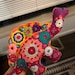 This cute handcrafted plushie dinosaur has a purple body with premium colorful embroidered accents.