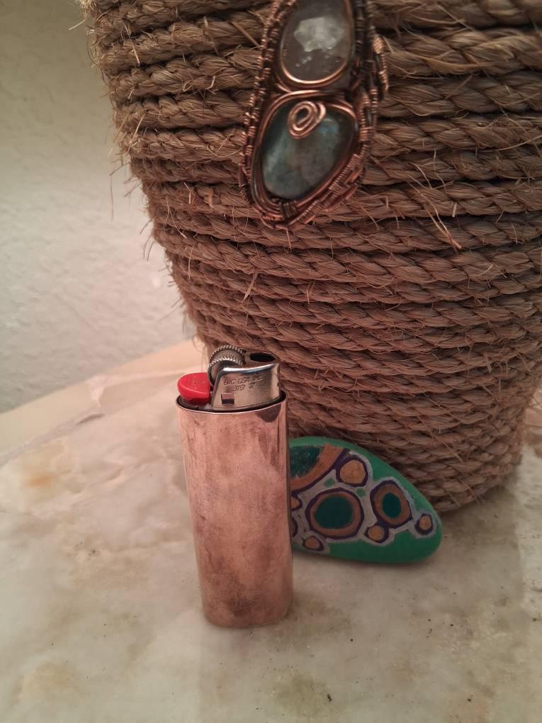 Pure Copper Lighter Cover. Fits standard size lighters. Dimensions: 1" x 2 3/4".