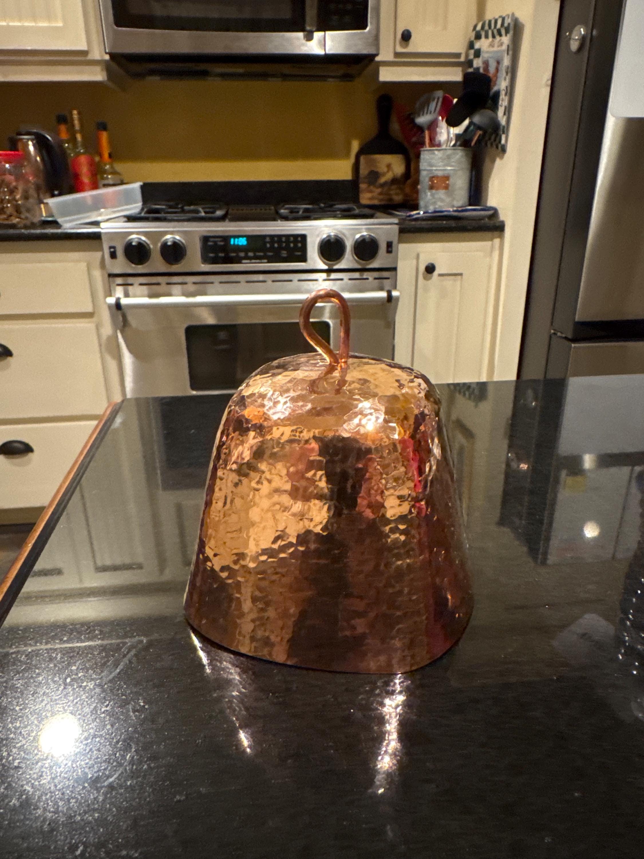 Pure Hammered Copper Cowbell. 4 3/4” tall. These cow bells are handcrafted using traditional hammering techniques. These bells look and sound great.